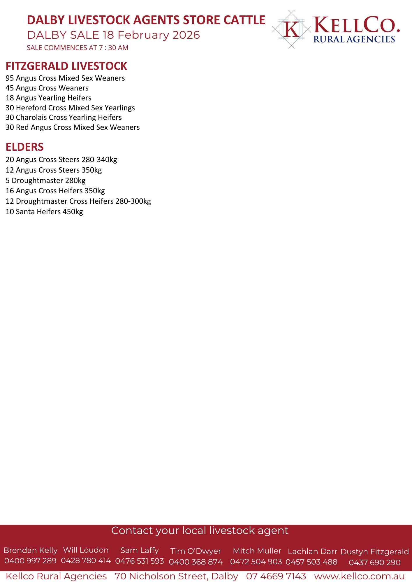 Dalby Sale Preview 18 February