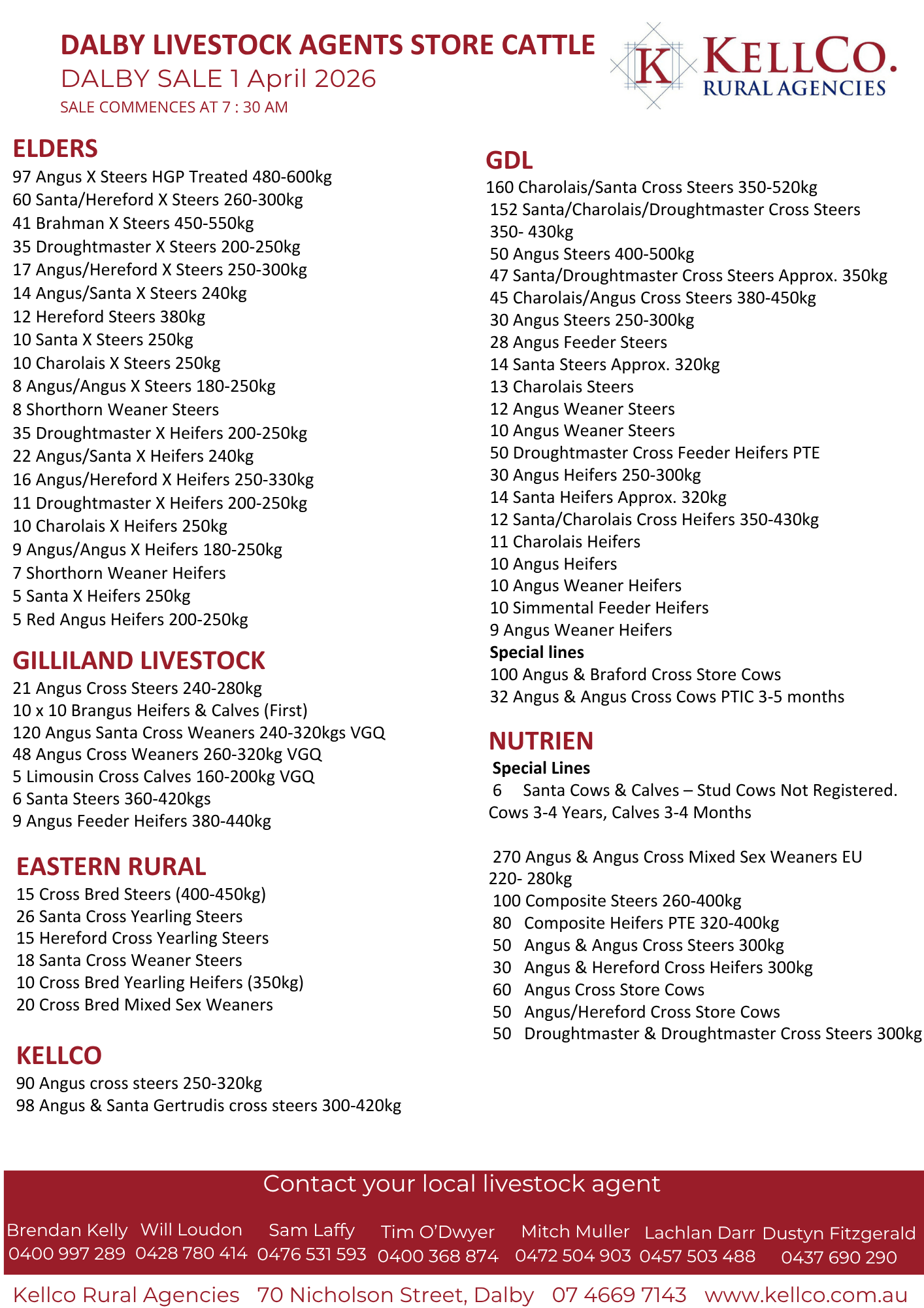 Dalby Sale Preview 1st April