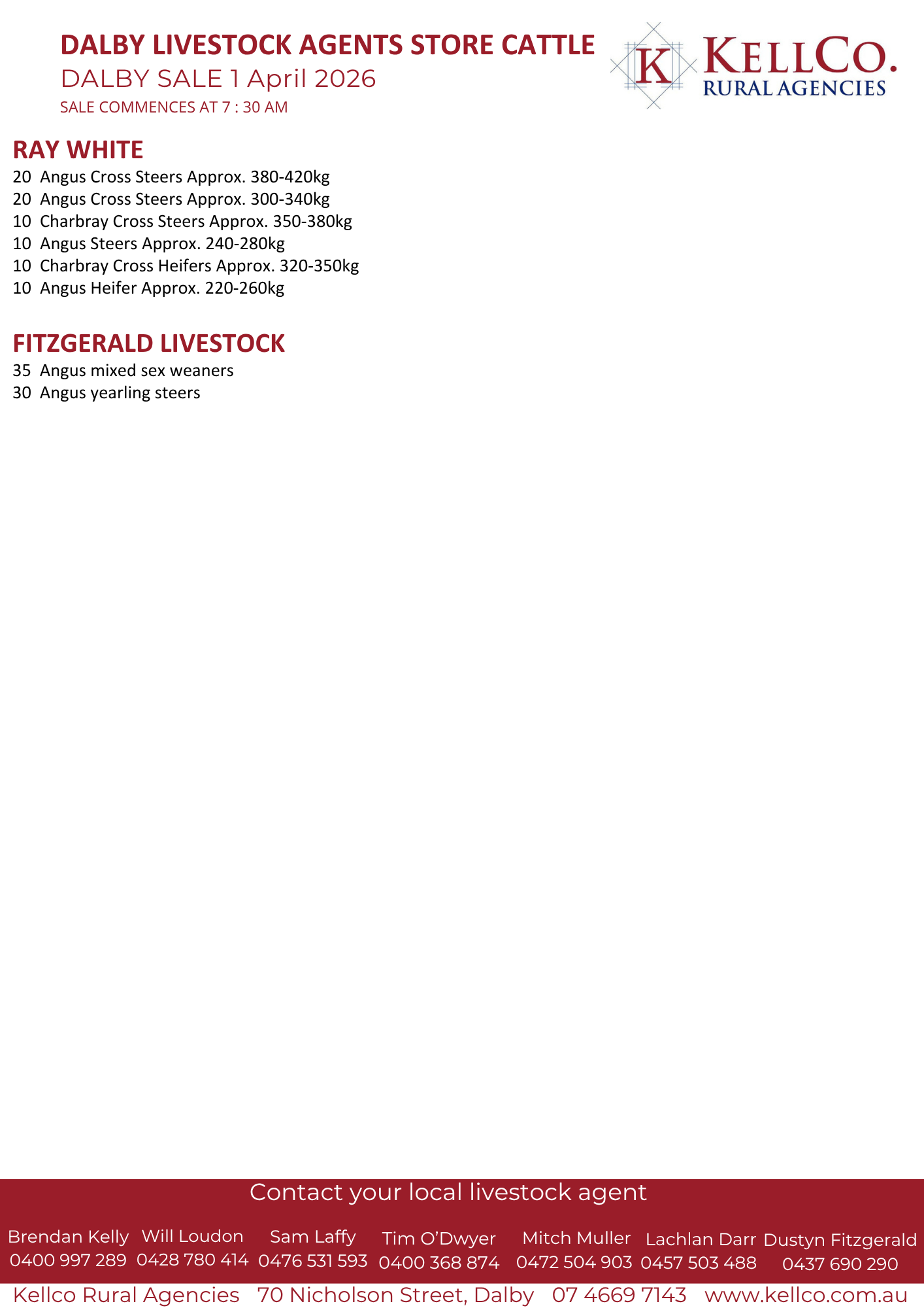 Dalby Sale Preview 25 March