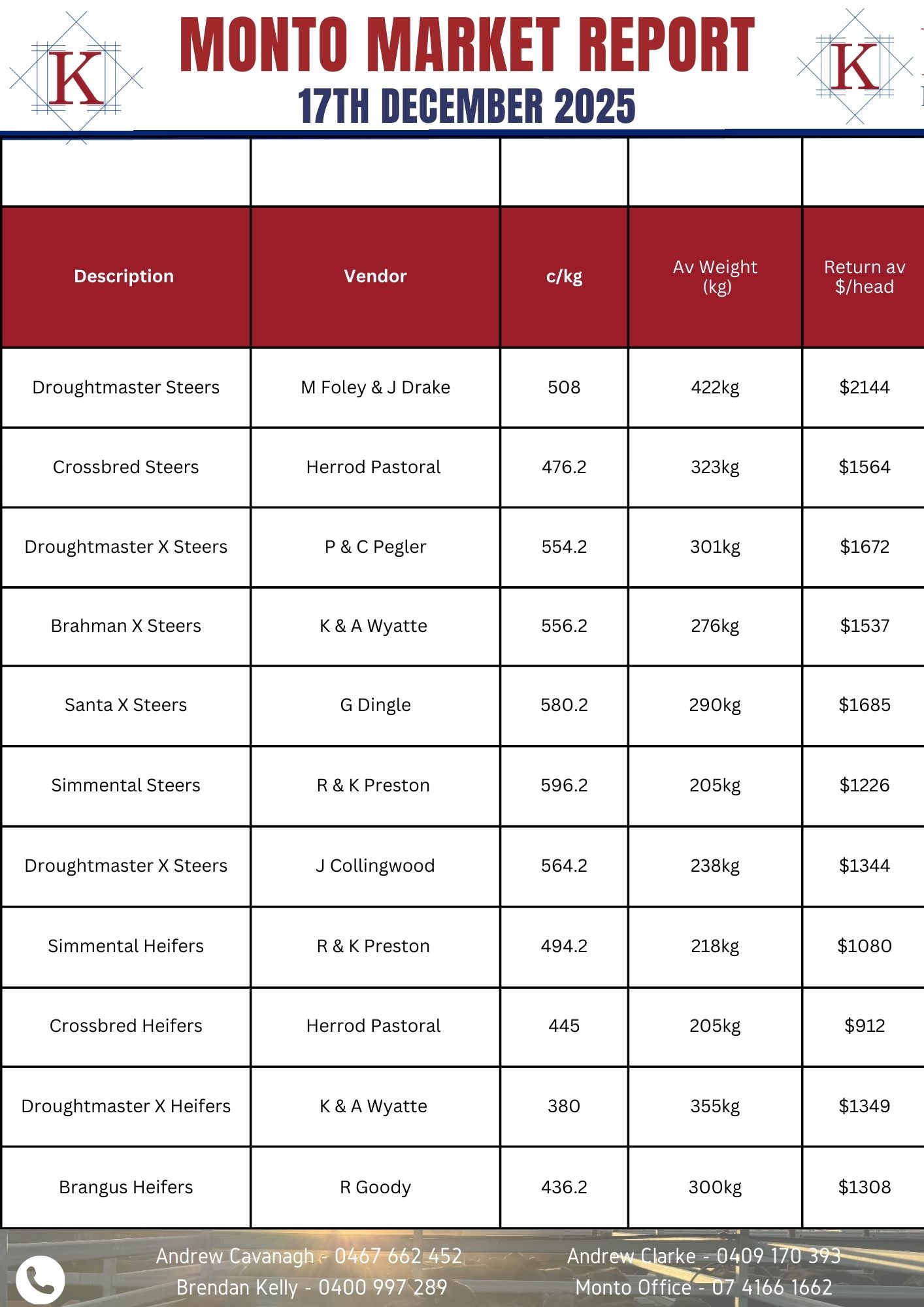 CLICK HERE FOR PRINTABLE MARKET REPORT