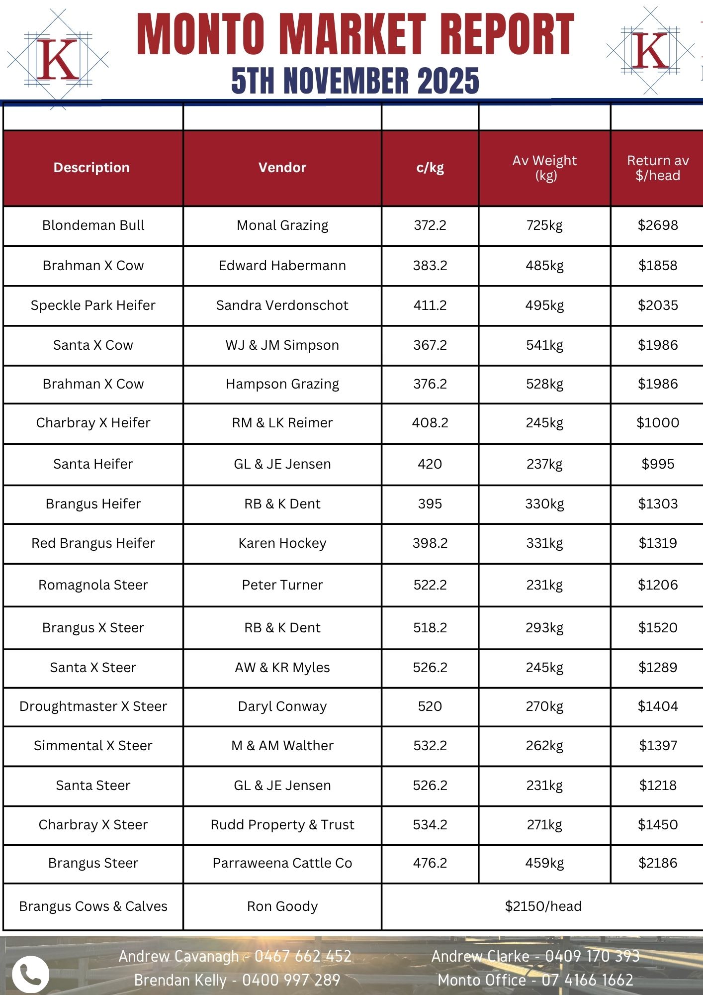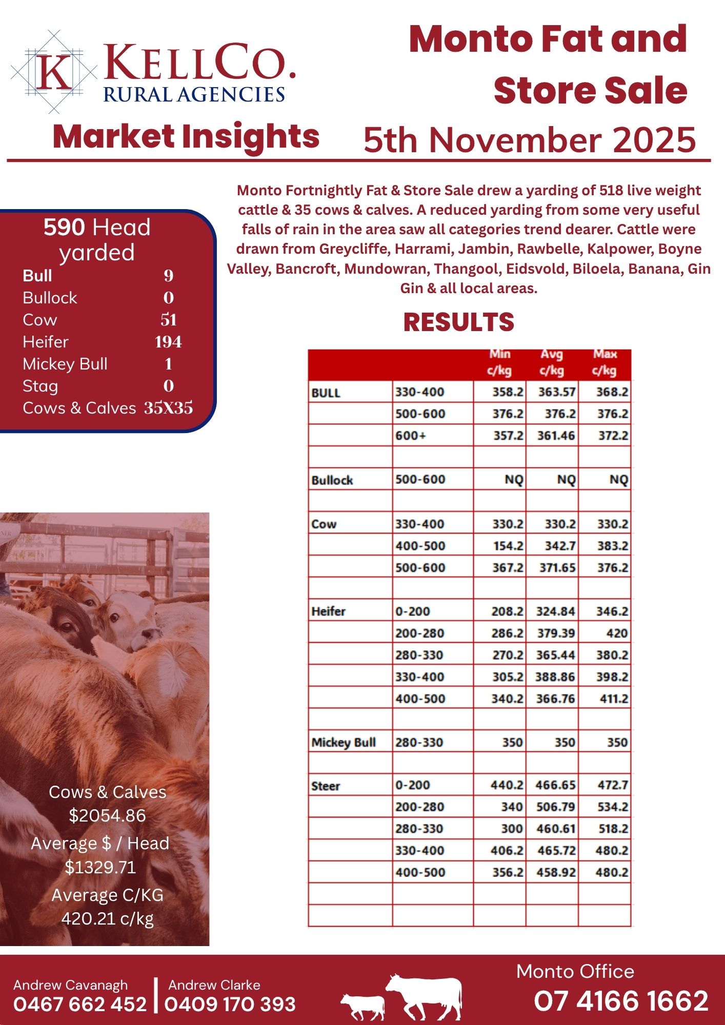 Monto Fortnightly Fat & Store Sale Market Report 5 November 2025