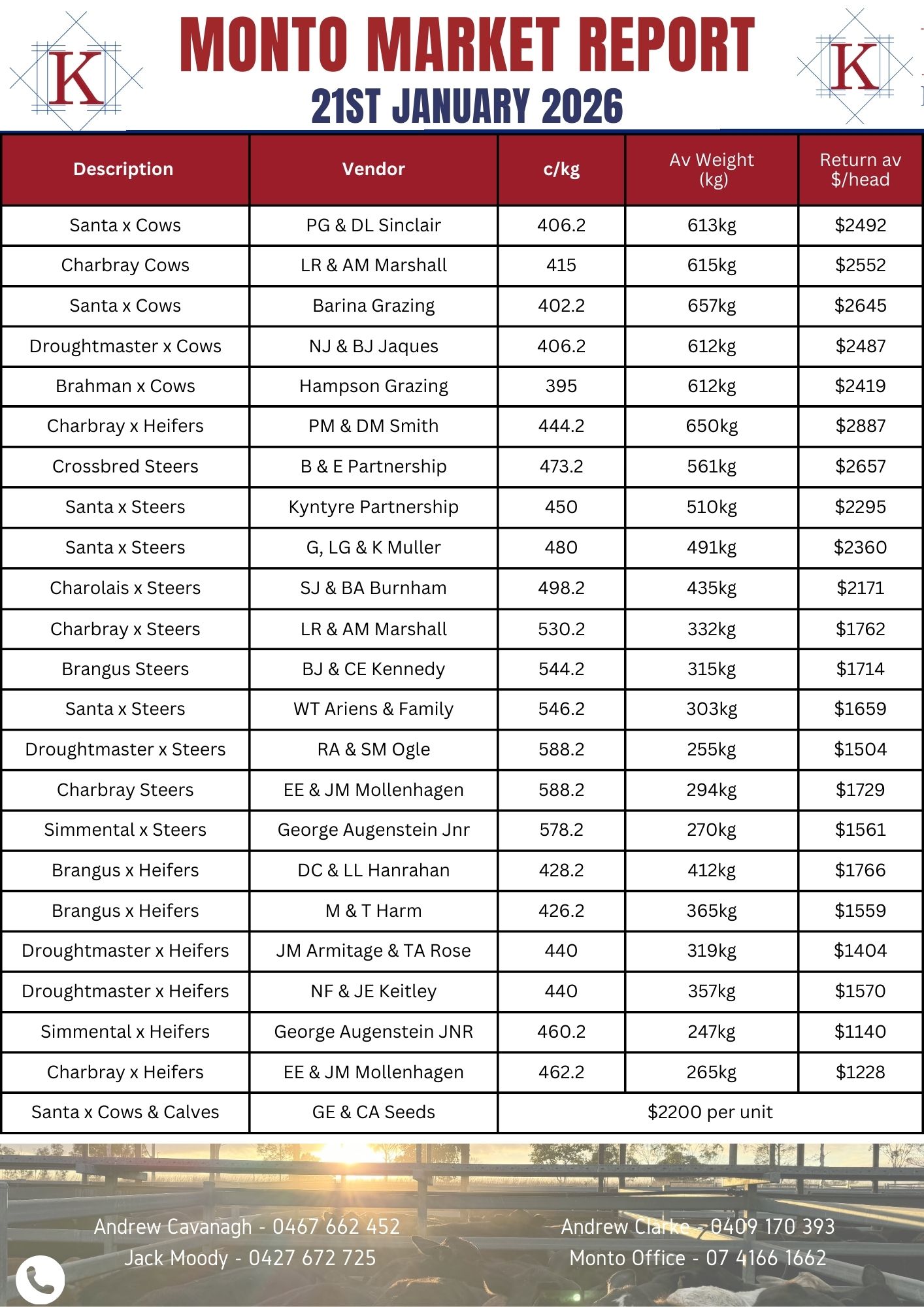 Monto Fortnightly Fat & Store Sale Market Report 21.01.26